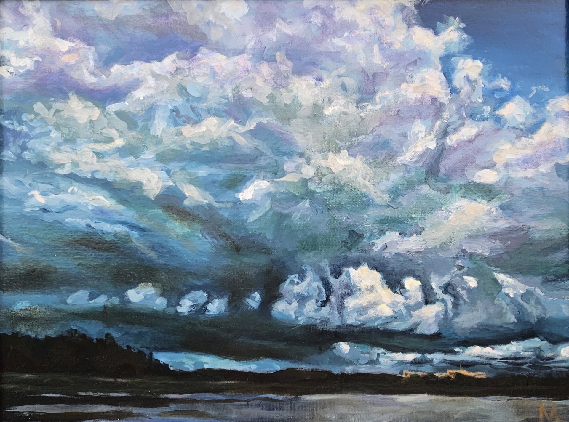I find myself drawn over and over to Floridian cloudscapes, in acrylic, and portraits of the Virgin Mary, drawn from historical paintings and illustrated with all different mediums.